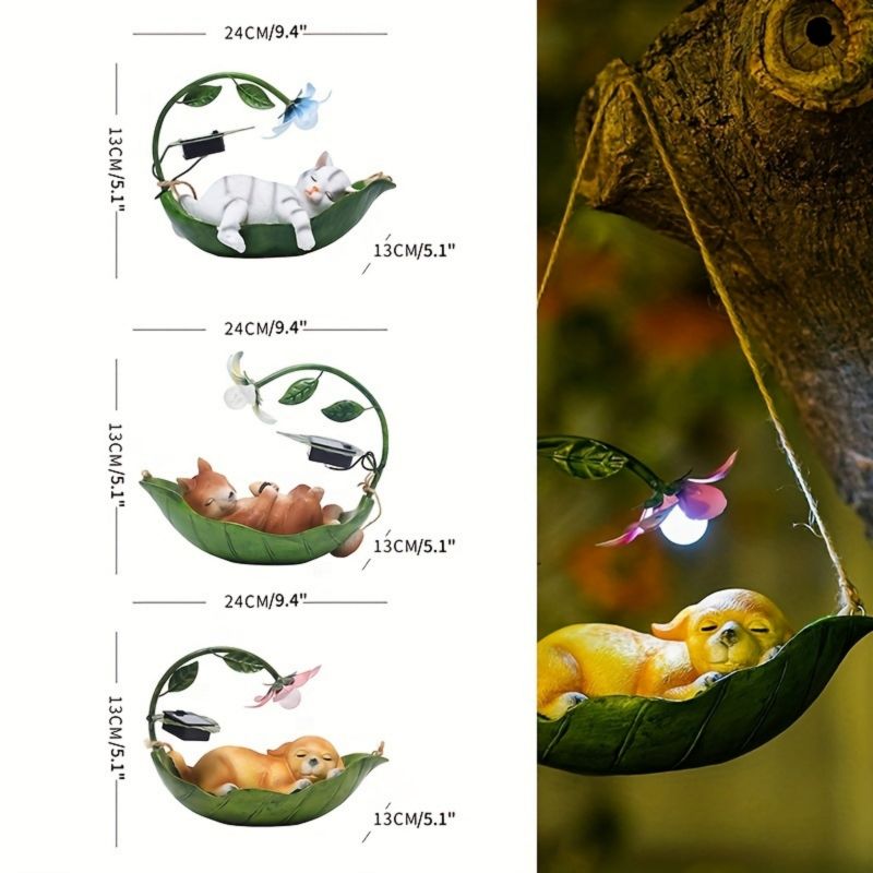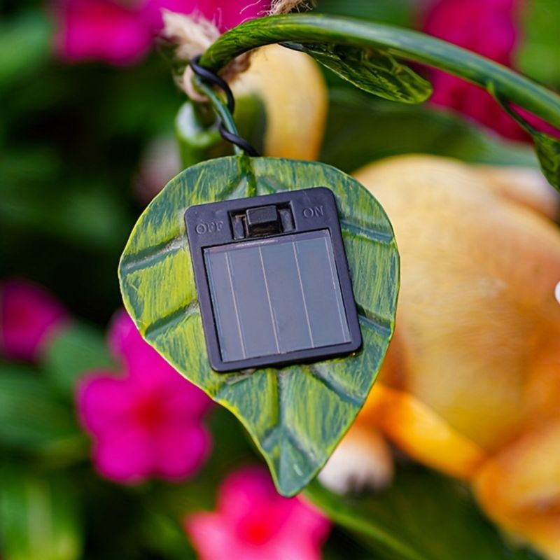 Designed with a whimsical swing suspended from a sturdy metal frame, this ornament features solar panels that harness sunlight throughout the day. As night falls, the swing comes alive with gentle illumination from the built-in solar-powered LED lights, creating a magical ambiance.